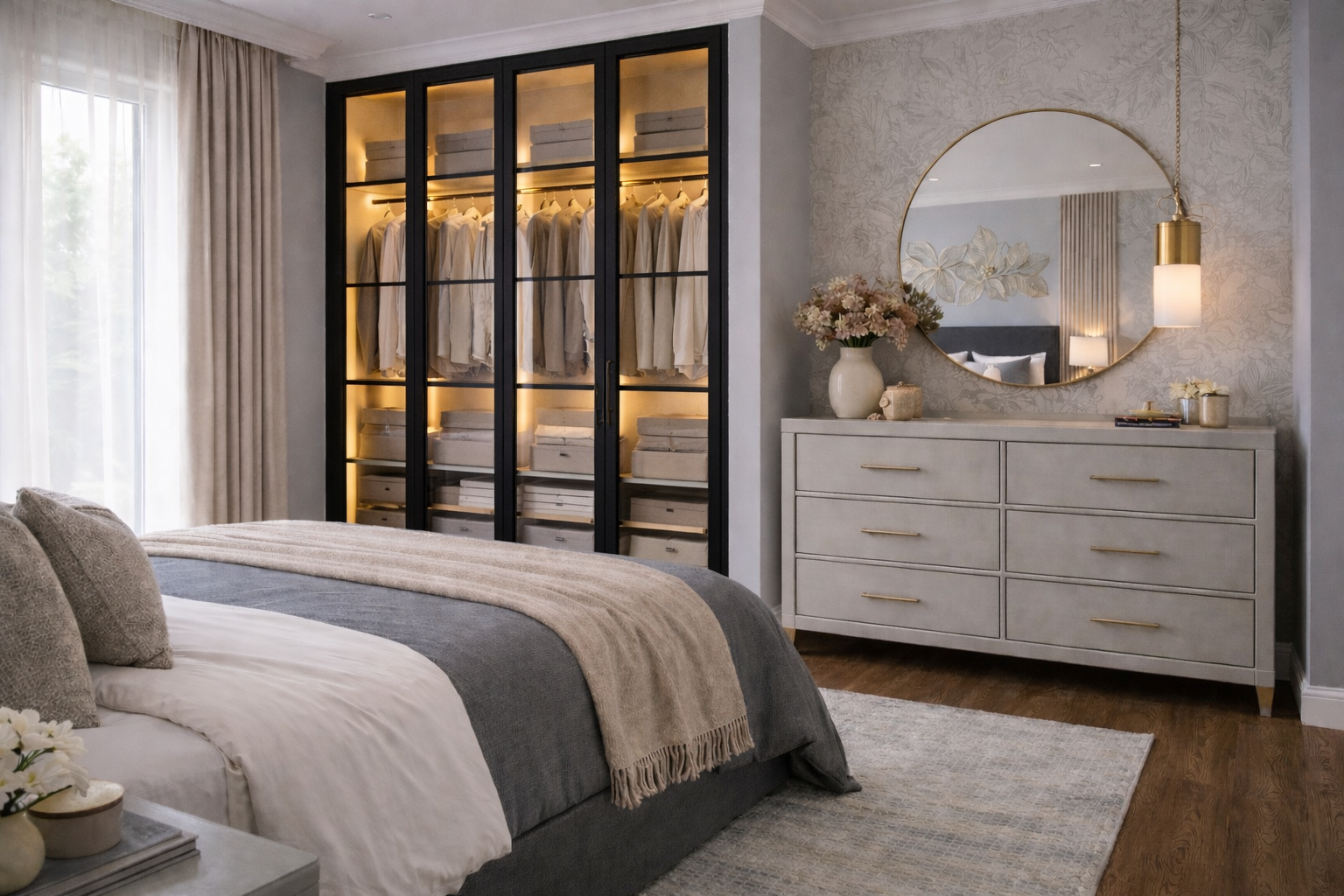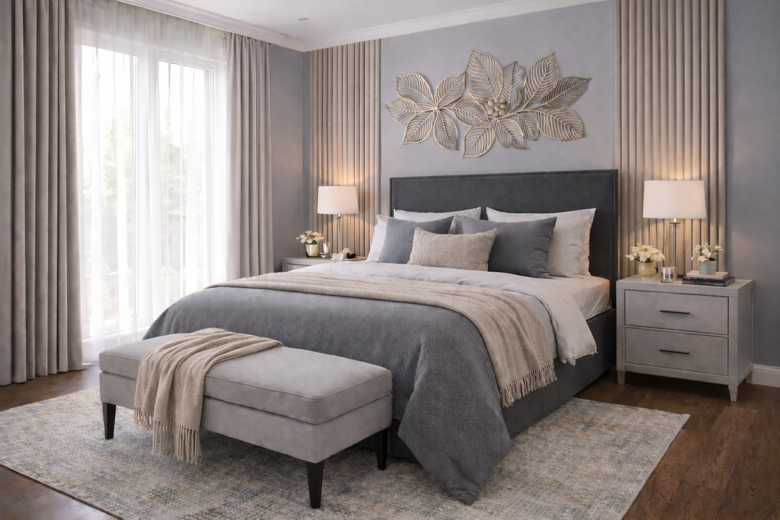 This luxury bedroom is the epitome of elegance and comfort, with plush bedding, high-quality materials, and a sophisticated color palette. Its minimalist design creates a clean, uncluttered look, while its luxurious details, such as a statement chandelier and custom-made furnishings, add a touch of glamour. The result is a serene, indulgent space that invites rest and relaxation.